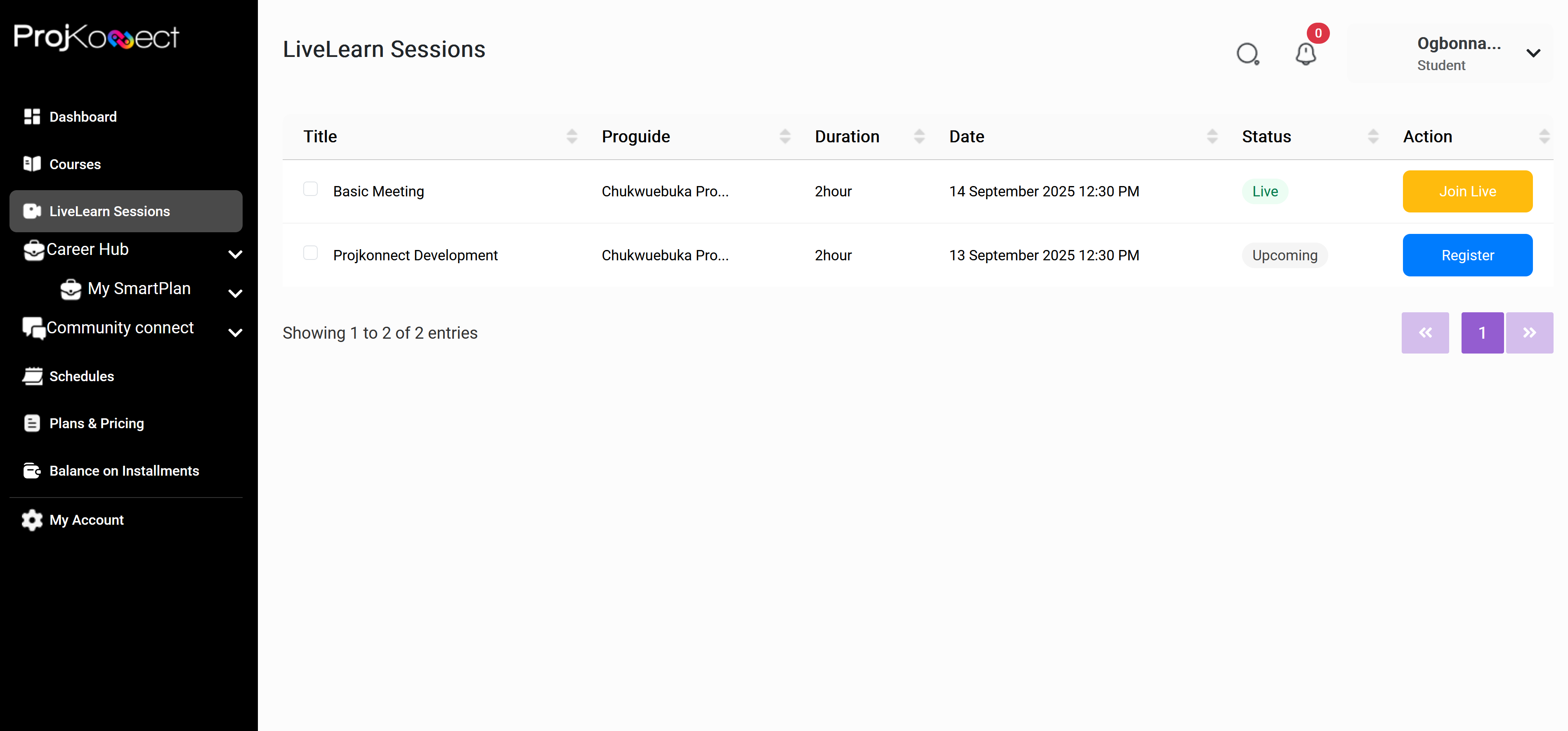 With ProjKonnect, students can connect globally through Student - Proguide academic tutoring sessions. Undergraduates gain opportunities to host or join live tutorials via LiveLearn and complete certified innovation courses in essential 21st-century skills. Our advanced hybrid personalised learning tool, MyProguide AI, supports independent study, project research, and management.